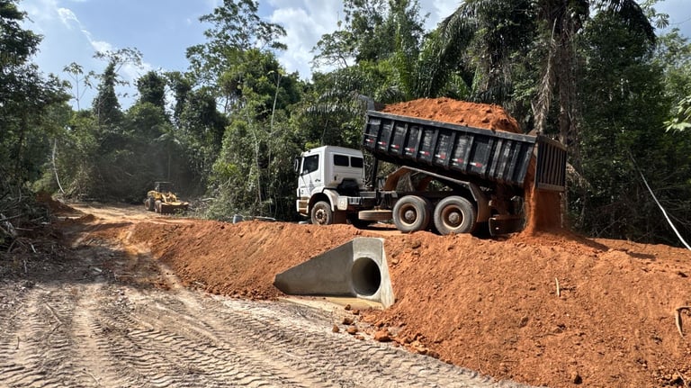 Implantação de bueiros, canaletas e paliçadas para estabilidade e escoamento eficiente