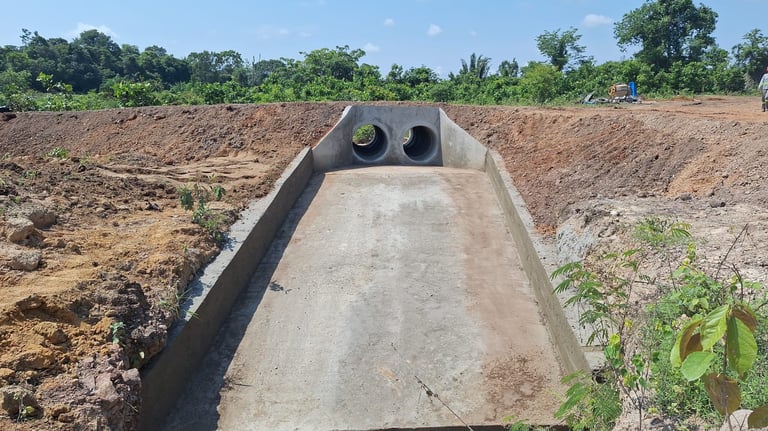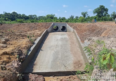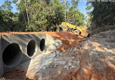Implantação de bueiros, canaletas e paliçadas para estabilidade e escoamento eficiente
