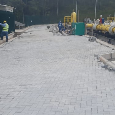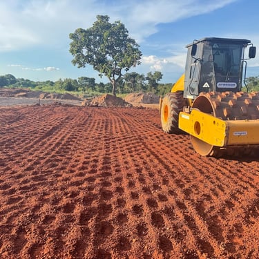 Execução completa com foco em fundações, acessos, drenagem e estabilização de solo.